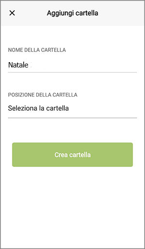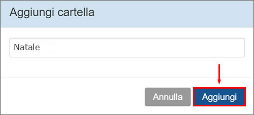 Si aprirà una finestra dove inserire il nome della nuova cartella: Natale. Clicca su Aggiungi per salvarlo.